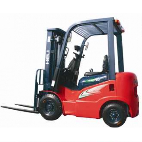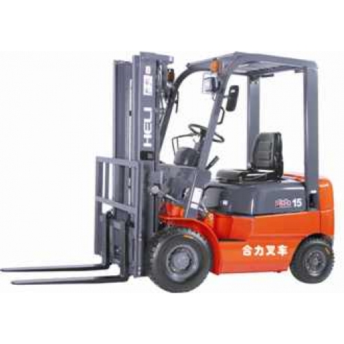 ⊙离车时,将货叉下降着地,并将档位手柄放在空档位置,发动机熄火并断开电源,将手制动拉好,在坡道停车时,还须用垫块垫住车轮。